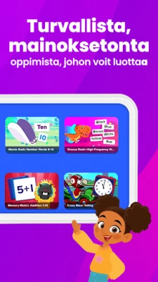 Koe uudistunut ABCmouse, joka tarjoaa hauskoja oppimispelejä ja leikkialueita 2–8-vuotiaille lapsille. Palkittu opetussuunnitelma auttaa esikoulu- ja päiväkoti-ikäisiä oppimaan englantia turvallisessa ja innostavassa ympäristössä. Yli 45 miljoonaa perhettä luottaa ABCmouseen lapsensa oppimisessa.