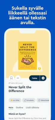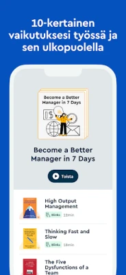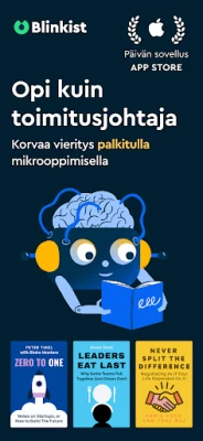 Oletko valmis mullistamaan tapasi omaksua tietoa ja kehittää itseäsi? Kuvittele saavasi syvällisimmät oivallukset tuhansista bestseller-teoksista ja suosituista podcasteista jopa neljänneksessä tunnissa. Blinkist tarjoaa juuri tämän ainutlaatuisen kokemuksen, tehden elinikäisestä oppimisesta vaivatonta ja mukaansatempaavaa – olipa tavoitteenasi sitten urapolun edistäminen, henkilökohtaisen potentiaalin vapauttaminen tai yksinkertaisesti uteliaisuuden ruokkiminen tiukankin aikataulun puitteissa. Sen avulla miljoonat ihmiset ovat jo löytäneet nopeamman ja älykkäämmän reitin tietämyksen äärelle.