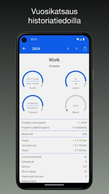 iboChron tekee työajan seurannasta vaivatonta. Kirjaa tunnit helposti liukukytkimellä tai jälkikäteen, laske tauot ja ylityöt automaattisesti. Saat selkeän yleiskuvan ansioistasi, sairaus- ja lomapäivistäsi. Ihanteellinen yrittäjille, freelancereille ja työntekijöille. Jaa raportit vaivattomasti. Tiedot tallennetaan turvallisesti laitteellesi.