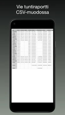 iboChronin avulla saat yksityiskohtaisen näkymän kaikista kirjauksistasi. Automaattiset laskelmat käsittelevät tauot, ylityöt ja tulot puolestasi, ja voit hallita useita projekteja sekä työaikapankkisi siirtoja. Tarvitsetko raportin? Vie tuntitiedot vaivattomasti CSV-muodossa sähköpostitse tai avaa ne suoraan Excelissä tai Numbersissa. Siri-oikopolut ja NFC-tunnisteet tehostavat kirjautumista entisestään, tehden työajan seuraamisesta nopeampaa kuin koskaan. Lisäksi kaikki tietosi tallennetaan turvallisesti ja paikallisesti vain laitteellesi.