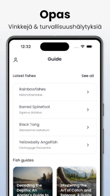 Käyttökokemus on suunniteltu ensisijaisesti helppoutta ja saavutettavuutta silmällä pitäen. Fish Identifierin intuitiivinen ja selkeä käyttöliittymä takaa, että kaikenikäiset ja -tasoiset käyttäjät voivat nauttia sen tarjoamista eduista ilman edeltävää asiantuntemusta. Lisäksi, jotta luonnon tarkkailu ei koskaan jäisi yhteyden puutteesta kiinni, sovellus mahdollistaa kalojen tunnistamisen jopa silloin, kun olet täysin verkon ulottumattomissa. Anna Fish Identifierin syventää ymmärrystäsi kalamaailmasta ja rikastaa jokapäiväisiä retkiäsi ja harrastuksiasi.