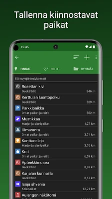 Suunnittele reittisi tarkasti, etsi paikkoja nimellä ja mittaa etäisyyksiä vaivattomasti. Voit tallentaa ja järjestellä omia kiinnostavia paikkoja ja reittejä ryhmiin, sekä jakaa ja tuoda niitä GPX-tiedostoina. Olipa kyseessä sitten vaellusreitti tai kalastuspaikka, tietosi pysyvät järjestyksessä. Sovellus tukee myös BLE-sykevöitä, joiden avulla seuraat sykettäsi luotettavasti. Lisäksi varmuuskopiointi omalle Google Drive -tilillesi pitää kaikki arvokkaat tietosi turvassa ja saatavilla milloin tahansa. Tämä laaja ominaisuuskokonaisuus on käytössäsi maksutta.