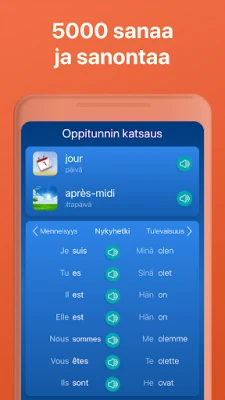Mondly tekee ranskan kielen hallinnasta helppoa sen edistyksellisten ominaisuuksien ansiosta. Nauti kristallinkirkkaasta äänestä, jonka ovat tuottaneet ammattimaiset syntyperäiset puhujat, ja opi ilmaisemaan itseäsi oikein alusta alkaen. Sen edistyksellinen puheentunnistusteknologia antaa sinulle palautetta vain, kun ääntämisesi on selkeää ja virheetöntä, mikä hioo taitojasi jokaisella kerralla. Sen sijaan, että opettelisit satoja irrallisia sanoja, Mondly keskittyy tilannesidonnaisiin ilmauksiin ja ryhmittelee ne teemoittain, jotta oppiminen tuntuu luontevalta. Voit myös napauttaa mitä tahansa ranskankielistä verbiä nähdäksesi sen täydellisen taivutuksen ja käännöksen salamannopeasti, tehokkaammin kuin sanakirjan selaaminen. Edistymistäsi seurataan älykkäillä tilastoilla, jotka visualisoivat matkaasi kohti sujuvuutta.