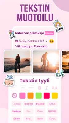 Tee jokaisesta merkinnästä aidosti omasi **Päiväkirjani** kattavilla mukautusvaihtoehdoilla. Valitse tunnelmaasi sopivat taustavärit, vaihda tekstityyliä ja -fonttia sekä valitse juuri oikeat emojit ilmaisemaan nykyistä mielenmaisemaasi. Sovelluksen intuitiivinen ja esteettisesti miellyttävä käyttöliittymä on suunniteltu helppokäyttöiseksi, varmistaen vaivattoman kokemuksen kaikille. Mikä parasta, **Päiväkirjani** toimii saumattomasti myös ilman verkkoyhteyttä, joten voit tallentaa muistosi missä ja milloin tahansa, riippumatta internetin saatavuudesta.