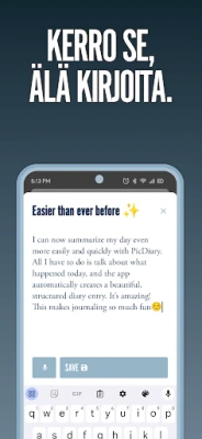 PicDiary mullistaa päiväkirjanpidon tekemällä siitä vaivatonta ja esteettistä. Tallenna elämäsi ainutlaatuiset hetket, kokemukset ja muistot kuvien sekä henkilökohtaisten muistiinpanojen avulla. Dokumentoi päiväsi kauneus helposti ja luovasti PicDiarylla.