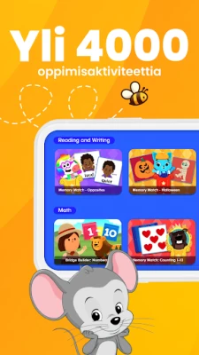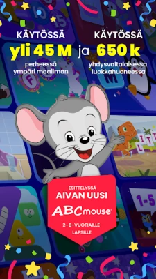 Koe uudistunut ABCmouse, joka tarjoaa hauskoja oppimispelejä ja leikkialueita 2–8-vuotiaille lapsille. Palkittu opetussuunnitelma auttaa esikoulu- ja päiväkoti-ikäisiä oppimaan englantia turvallisessa ja innostavassa ympäristössä. Yli 45 miljoonaa perhettä luottaa ABCmouseen lapsensa oppimisessa.