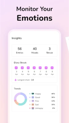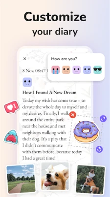 Syvennä kokemustasi monipuolisilla toiminnoilla. Tee merkinnöistäsi elävämpiä liittämällä niihin valokuvia, muuttaen "Daily Diary: Journal with Lock" -sovelluksen rikkaaksi kuvapäiväkirjaksi. Mielialanseuraaja auttaa sinua ymmärtämään tunteitasi ja löytämään, mitkä asiat tuovat iloa tai haastavat mieltäsi, edistäen näin itsetuntemustasi. Kalenteriominaisuuden avulla voit palata menneisiin hetkiin ja muistoihin milloin tahansa, sekä organisoida tulevia suunnitelmiasi tehokkaasti. Päivittäiset muistutukset puolestaan kannustavat säännölliseen päiväkirjan pitoon, muuttaen siitä vaivattoman osan rutiinejasi.