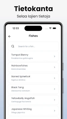 Fish Identifierin sydämessä sykkii laaja ja jatkuvasti laajeneva tietokanta, joka kattaa tuhansia kalalajeja maapallon kaikilta kolkilta. Yksinkertaisesti ottamalla kuvan tai lataamalla olemassa olevan valokuvan laitteestasi, voit hetkessä saada yksityiskohtaisia tietoja tunnistetusta lajista. Erityistä huomiota on kiinnitetty suomalaisten vesistöjen aarteisiin, kuten lohen ja taimenen tunnistukseen, tarjoten syvällisempää tietoa näistä arvostetuista lajeista niiden ainutlaatuisilla ominaisuuksilla. Sovellus on kuin henkilökohtainen kalatutkijasi, aina valmiina palvelemaan.