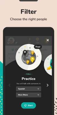 Kielitaidon kehittäminen Lingben avulla on intuitiivista: paina vain yhtä nappia, ja löydämme sinulle puhujan, joka on valmis auttamaan sinua heti. Nämä ilmaiset äänipuhelut eivät ole vain keskusteluja, vaan myös tehokkaita oppimishetkiä. Saat jokaisen puhelun jälkeen arvokasta palautetta ääntämisestäsi, kielioppivirheistäsi ja yleisestä sujuvuudestasi, jotta näet kehityksesi selkeästi. Jos kokemus oli miellyttävä, voit antaa peukalon ylös harjoittelukumppanillesi. Jos tykkäys on molemminpuolinen, voitte jatkaa juttelua vapaasti, kuin vanhojen ystävien kesken.