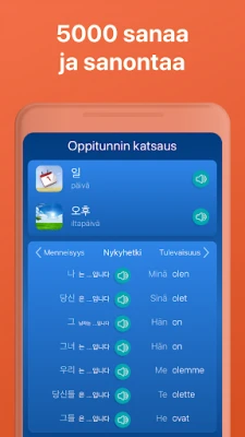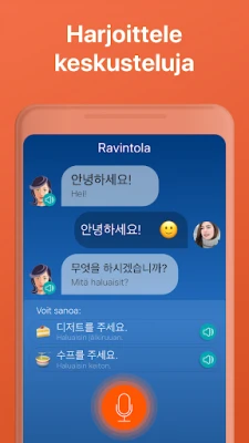Opi koreaa tehokkaasti Mondlylla. Kehitä sanastoasi, kielioppiasi ja ääntämistäsi hauskoilla oppitunneilla. Aloittelijasta edistyneeseen, Mondly mukautuu tarpeisiisi tarjoten puheentunnistuksen ja kattavat harjoitukset.
