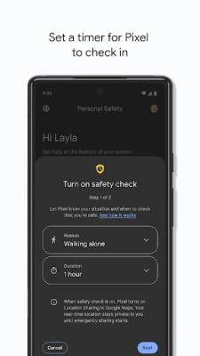 Lisääntyneen turvallisuuden takaamiseksi voit hyödyntää turvatarkistusta, joka muistuttaa sinua vahvistamaan olevasi kunnossa ennalta määrätyn ajan kuluttua. Jos vahvistusta ei tule, apu pyörähtää käyntiin automaattisesti jakamalla sijaintisi. Pixel-puhelimilla koet ainutlaatuisen kolarintunnistuksen: jos laite havaitsee vakavan törmäyksen, se voi automaattisesti tarjota apua hätäkeskukseen soittamisessa. Pixel Watch puolestaan tunnistaa kaatumiset ja osaa toimia samoin varmistaakseen, että saat tukea ilman viivettä. Näitä toimintoja voi hallita ja hyödyntää myös Google Assistantin avulla, tehden avunsaannista entistä sujuvampaa.