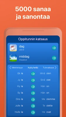 Todellinen puhekyky on Mondlyn opetuksen ydin. Rakennat vankkaa ydinsanastoa, joka sisältää usein käytettyjä substantiiveja ja verbejä, ja opit ilmaisemaan itseäsi luontevasti afrikaansin kielellä. Tarvitsetko nopeasti verbin taivutukset? Yhdellä napautuksella saat näkyviin kaikki taivutusmuodot käännöksineen – nopeampaa ja tehokkaampaa kuin sanakirjan selaaminen. Älykkäiden tilastojen avulla pysyt aina kartalla edistymisestäsi, näet sanavarastosi kasvavan ja taitojesi kehittyvän askel askeleelta. Mondly mukautuu sinun oppimistyyliisi, ymmärtäen tarpeitasi ja räätälöiden kokemuksen juuri sinulle sopivaksi. Se on kuin oma, henkilökohtainen afrikaansin opettaja taskussasi, joka auttaa sinua hallitsemaan tuhansia sanoja ja ilmauksia ja saavuttamaan nopeasti sujuvan kielitaidon.