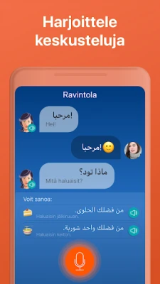 Mondlyn salaisuus piilee sen ainutlaatuisessa lähestymistavassa: se sukeltaa suoraan käytännön keskusteluihin. Sen sijaan, että aloittaisit loputtomilla kielioppisäännöillä, Mondly johdattaa sinut perusdialogin pariin, jossa ydinsanat ja -ilmaukset tarttuvat mieleen luontevasti. Vain 45 minuutin opetuskokonaisuuden päätteeksi huomaat kykeneväsi rakentamaan uudelleen koko keskustelun omin sanoin, esimerkiksi arabian kielellä. Huippuluokan luonnollisen puheen tunnistuksen ja älykkäiden toistojen ansiosta oppimisprosessi on jatkuvasti optimoitu tehokkuutta silmällä pitäen.